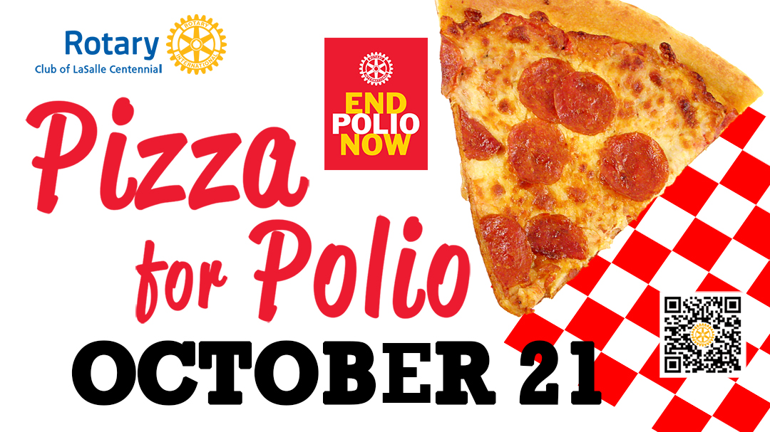 The Rotary Club of LaSalle Centennial and local pizzerias are joining forces in support of the worldwide eradication of POLIO. The annual Pizza for Polio fundraiser is in cooperation with Rotary International’s End Polio Now campaign.